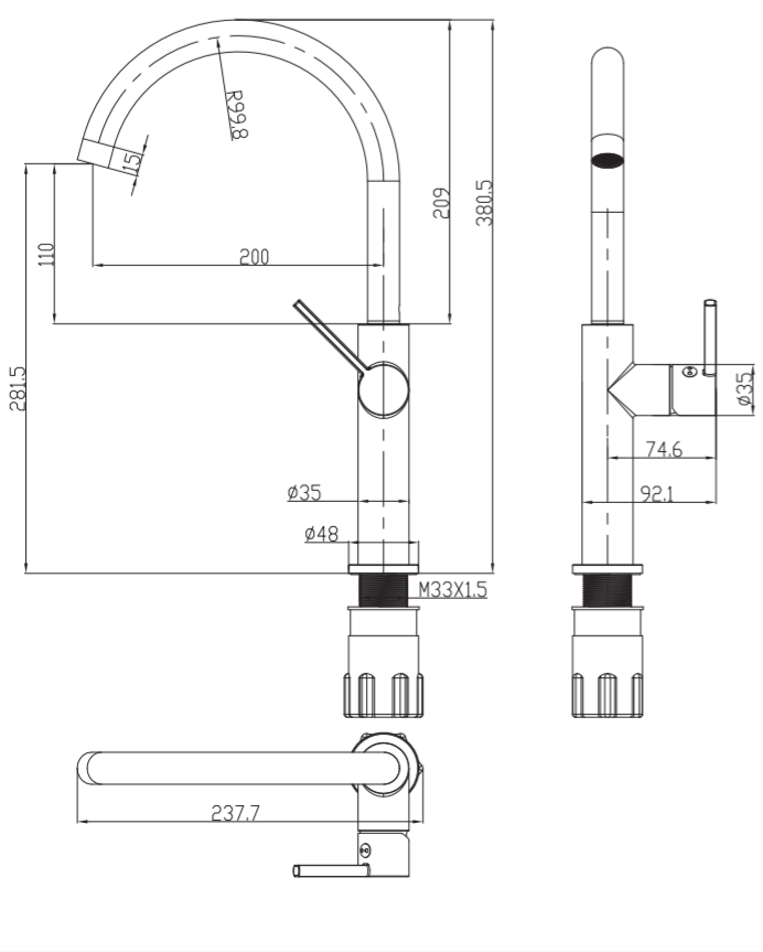 - wysokość wypływu wody: 28,1 cm