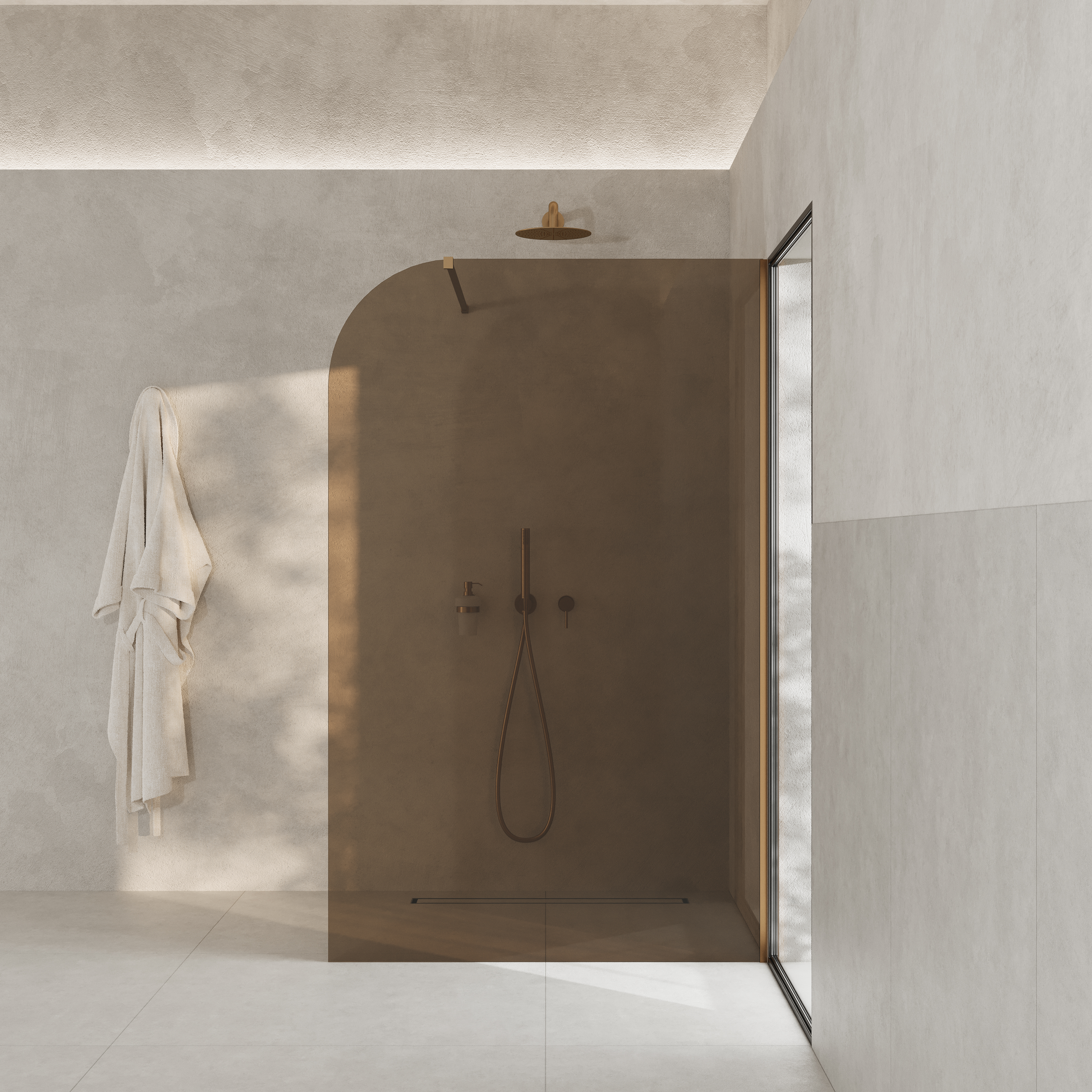 AD NATURALNIE GARDA WALL ścianka prysznicowa Walk-In 100x194cm szkło brązowe/profil miedziany szczotkowany SPR-005BR-100MSZ