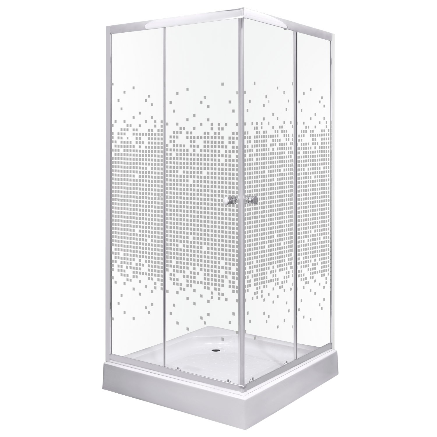 KERRA PIXEL SQ WHITE kabina prysznicowa kwadratowa 90x90x195cm szkło dekor/prof. chrom+ brodzik 90x15cm