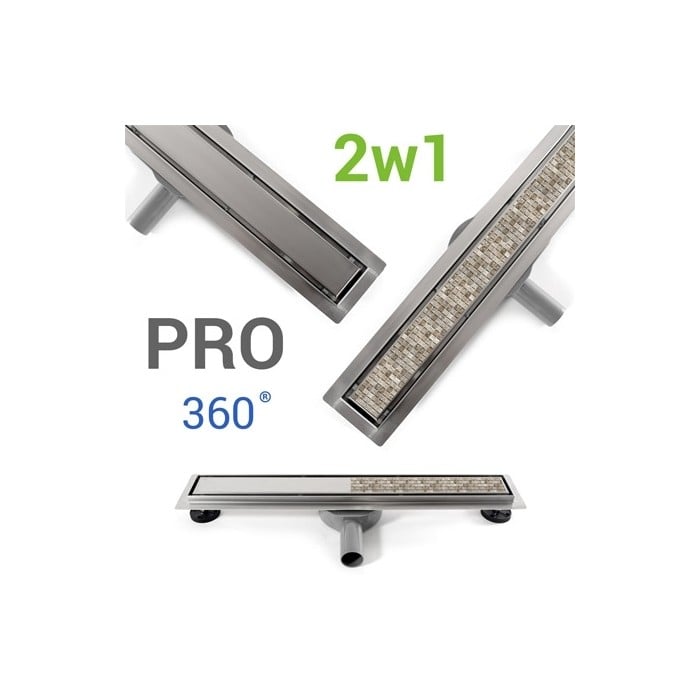 Odwodnienie liniowe NEO&PURE PRO z obrotowym syfonem (pakiet Premium Super Low) nóżki,rura 40/50mm i kołnierz uszczelniający w komplecie