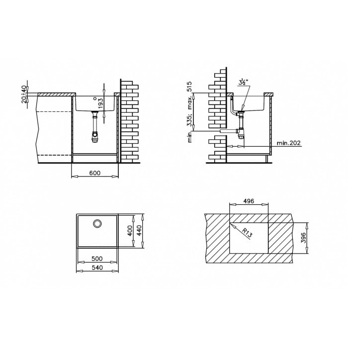 TEKA BE LINEA 500/400 zlewozmywak podwieszany ze stali szlachetnej polerowanej 10125134